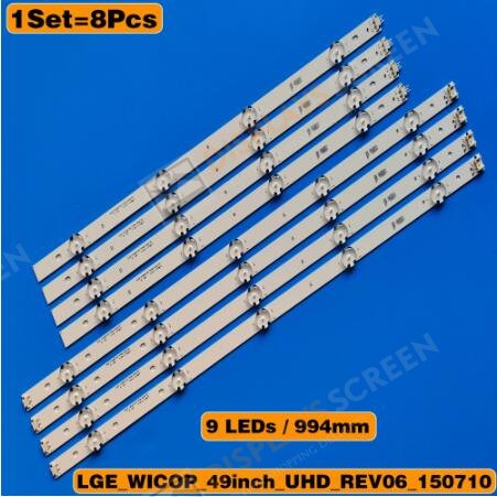 8pcs LED bar for LG 49UH610V 49UH610A 49UH6100 49LF5100 49UH6030 49UF640V 49UF6407 49UH6507 49LF510V LGE_WICOP_49inch_UHD/FHD